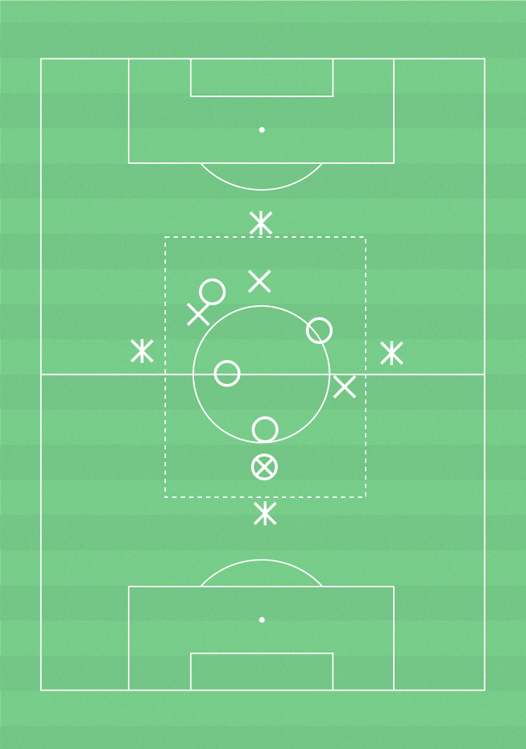 När det försvarande laget erövrar bollen ska spelarna passa någon av väggarna – kontra – i