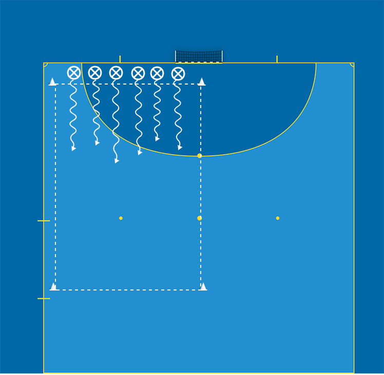 Yta 10-12 meter X 8-10 meter, spelare, bollar och koner.