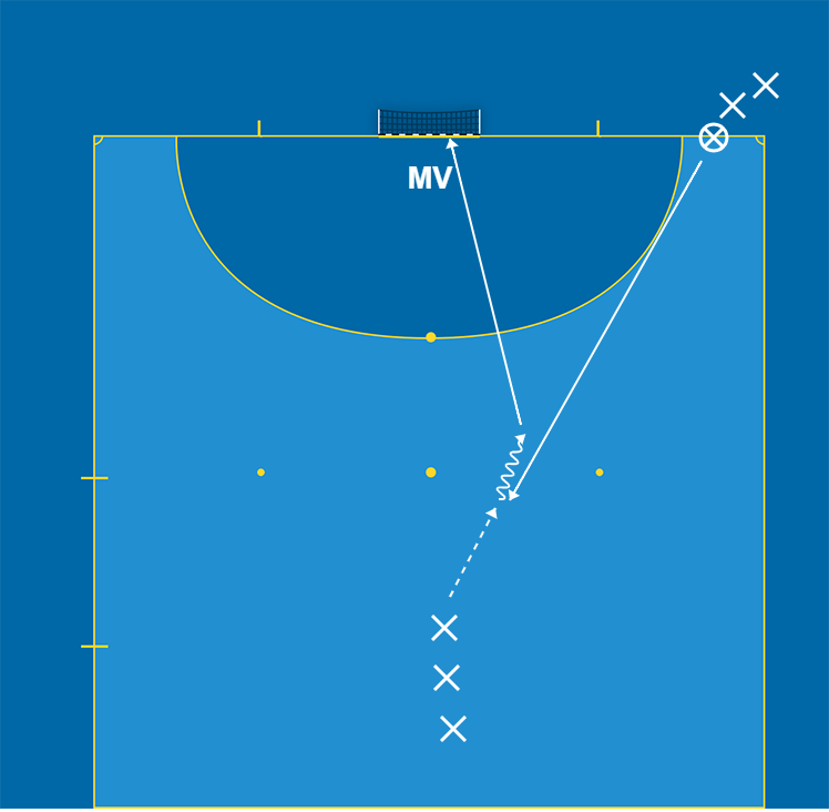 Målvakterna bör tänka på att ha en bra grundställning, komma ut och skära av vinklarna samt att rädda med båda händerna och kroppen bakom bollen. Stöt bort bollen från målet om det inte går att fånga den.