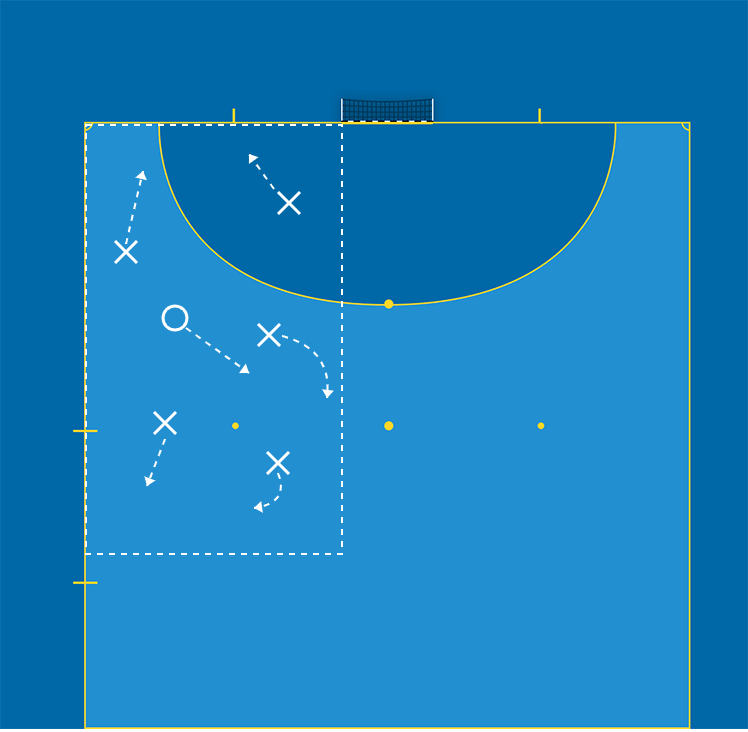 Ca 6 spelare, yta 10-12x7m och västar.