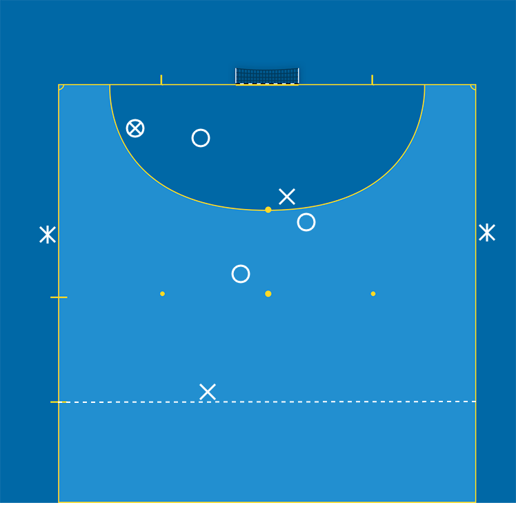 Spelarna i mitten ska orientera sig i alla riktningar för att få en överblick över planen och göra sig spelbara.