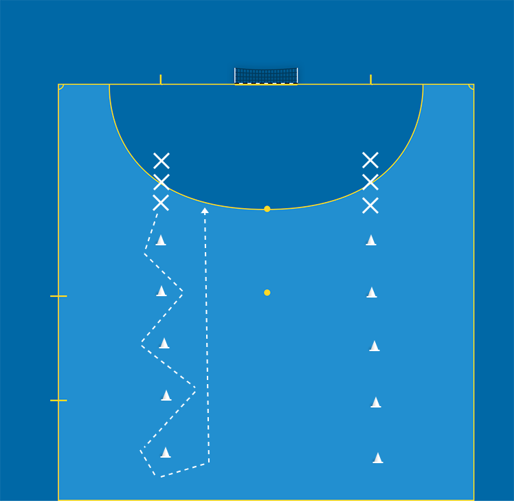 Spelaren som står först ska så snabbt som möjligt springa sicksack mellan konerna. Efter sista konen springer spelaren rakt tillbaka och växlar med spelaren som står först i ledet som gör samma sak. När alla har sprungit är de klara.
