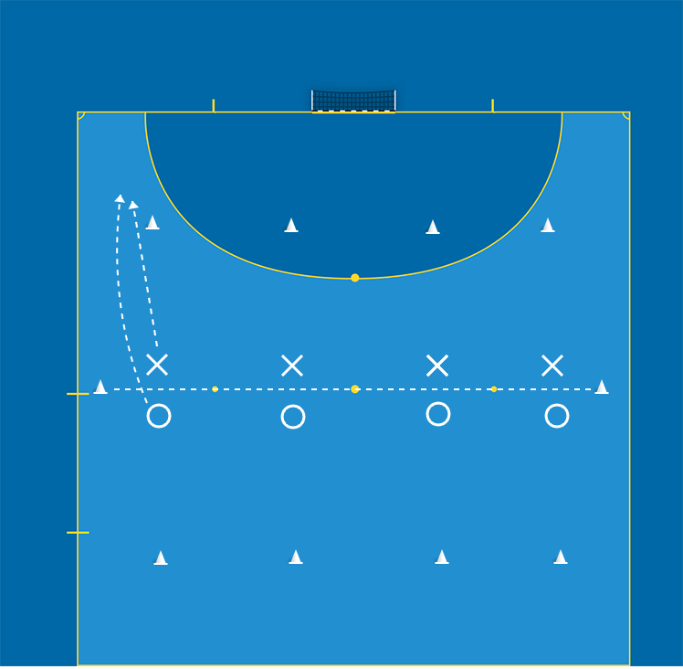 Spelarna behöver vara uppmärksamma på signal. Starta löpningen med korta steg och öka steglängden succesivt. Sätt i främre delen av foten, inga hälar som bromsar, sträck på överkroppen och hjälp till med armarna för att accelerera