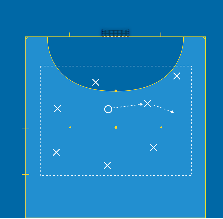 I övningen är det viktigt att spelarna är i rörelse, rör sig mot fria ytor, riktningsförändrar och tempoväxlar samt samarbetar med lagkamrater för att undgå att bli kullade.