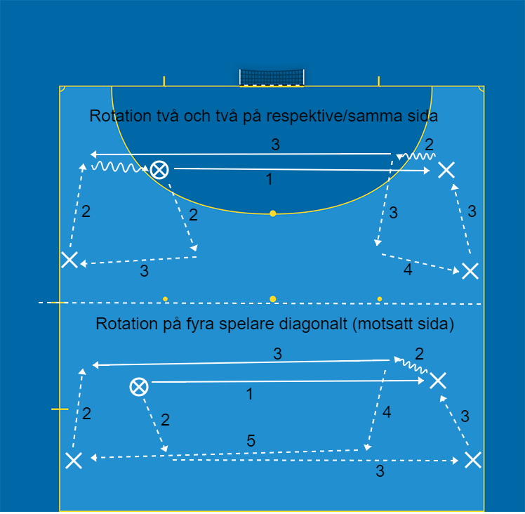 • Rotation på fyra spelare diagonalt (motsatt sida).