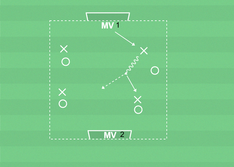 Målvakt 1 spelar till medspelare i försvarszonen.