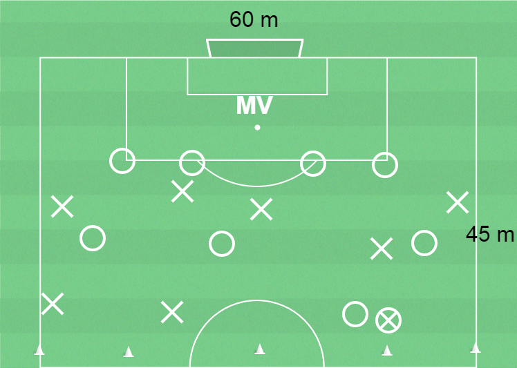 Spel 8 mot 8 plus målvakt i det försvarande laget.