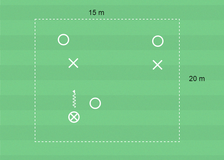 6 barn, spelplan 20 x 15 meter, bollar, koner och västar.