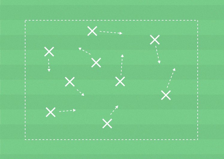 Förflytta dig i olika riktningar, framåt, bakåt och i sidled, genom att lyfta höger hand och vänster fot och tvärtom.