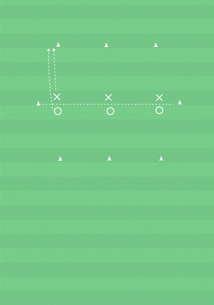 Spelarna har var sin boll mellan benen. Spelaren som ska till sin kona måste ta med sig bollen och driva förbi konan. Spelaren som jagar spriner utan boll.