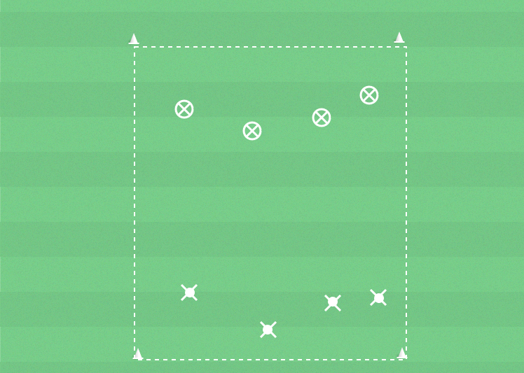 Spelare, bollar, yta 15x12 m (ca), västar, koner.