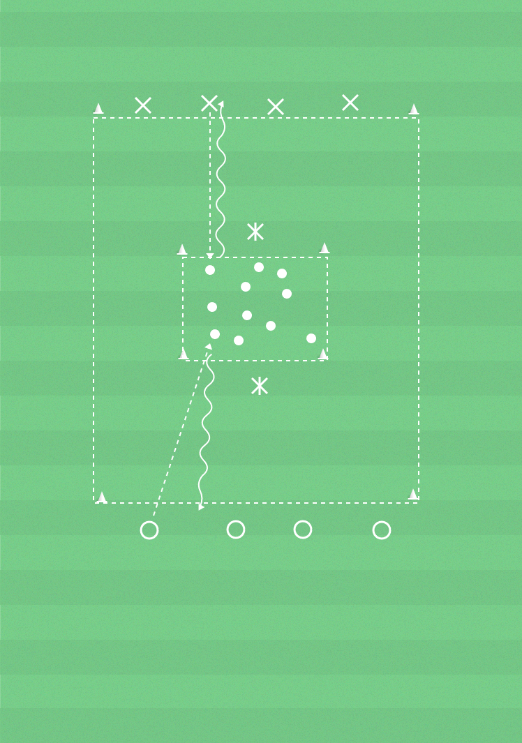 Spelare, bollar, yta 15x12 m (ca), konor, västar.