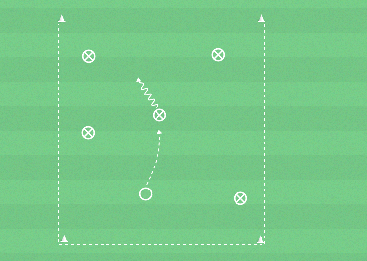 Spelare, bollar, yta 15x12 (ca - variera beroende på antal spelare och övningens syfte), konor, västar.
