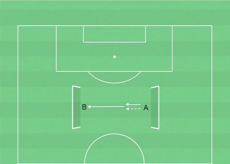 Alternativt kan A rulla bollen mot B som skjuter mot A.