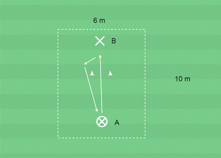 B tar emot bollen och passar tillbaka till A.