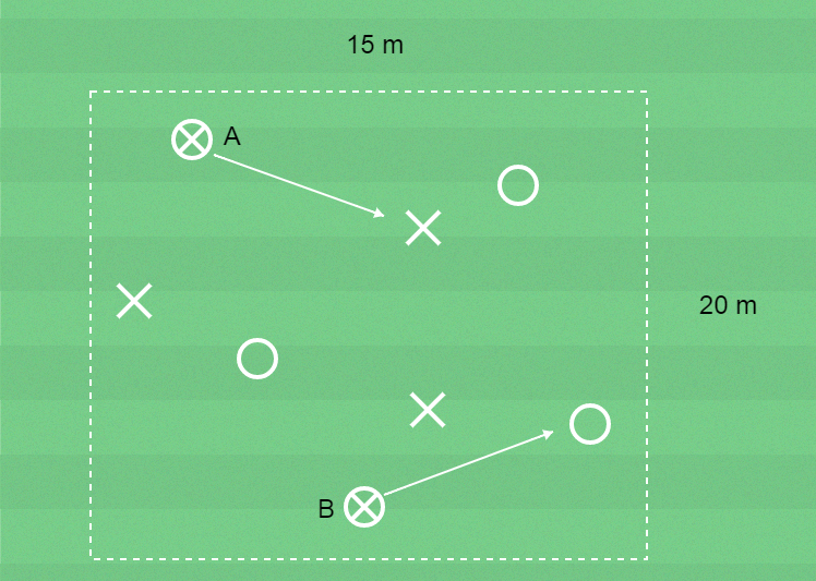 Barnen måste spela med 2 tillslag – ta emot och passa.