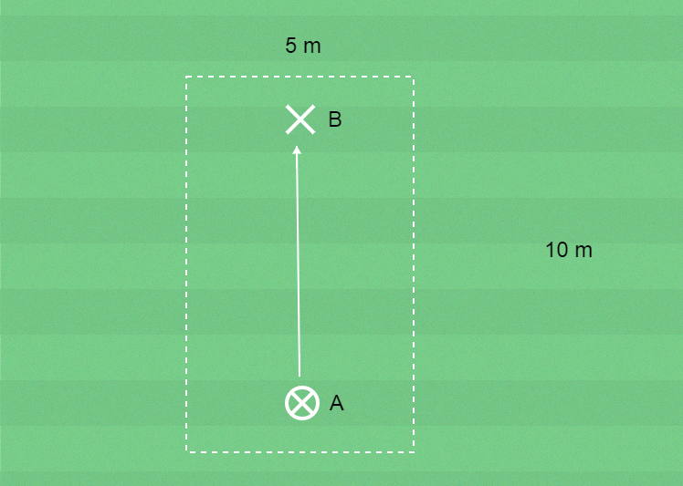 B passar bollen till A som tar emot bollen.