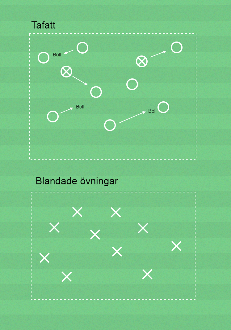 Övriga har tillsammans två eller tre fotbollar som de ska kasta mellan sig.
