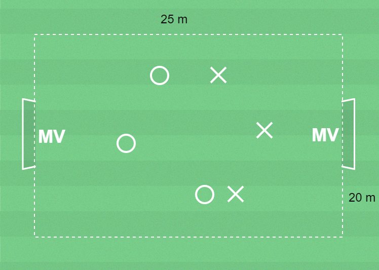8 barn, spelplan 25 x 20 meter med 2 mål, bollar, koner och västar.