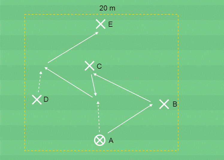 A passar bollen till B som tar emot den och passar till C.