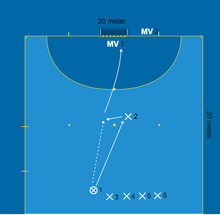 Spelaren som fångar bollen lämnar tillbaka bollen till den ursprunglige bollhållaren på olika sätt och därefter avslutar denne.