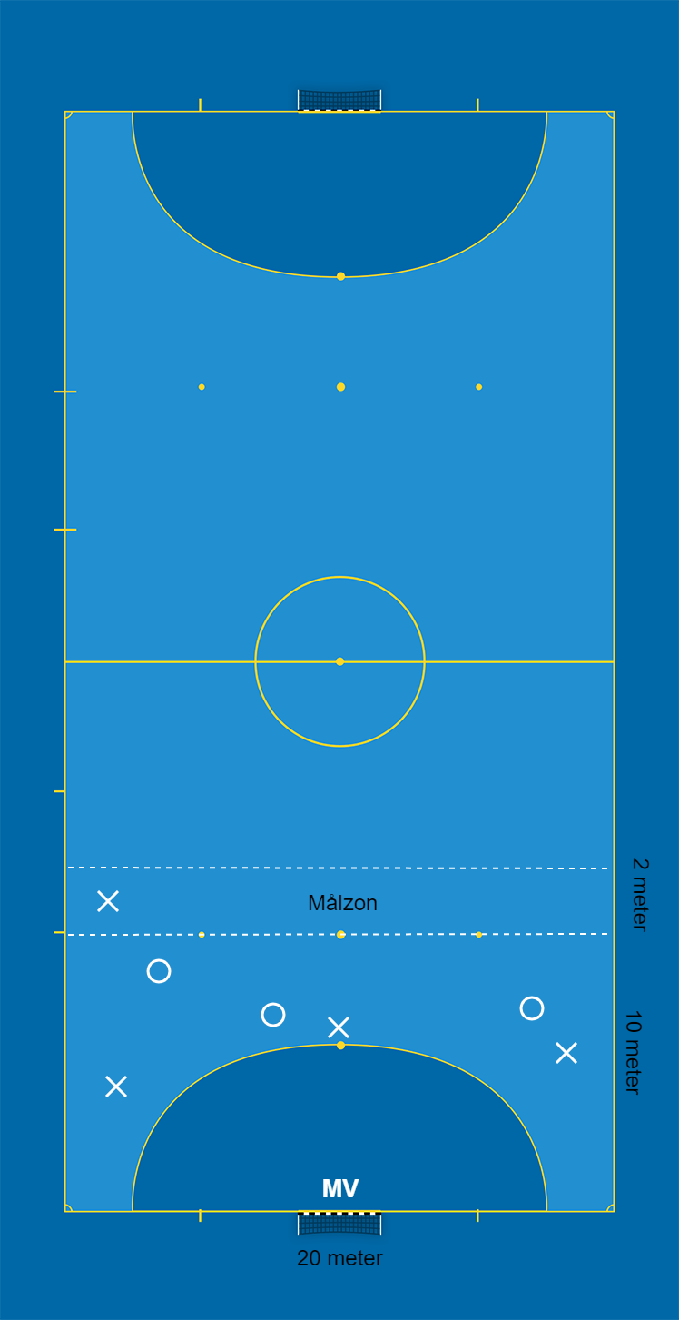 Målvakten startar med utkast längs marken till valfri medspelare, även till spelaren i målzonen.