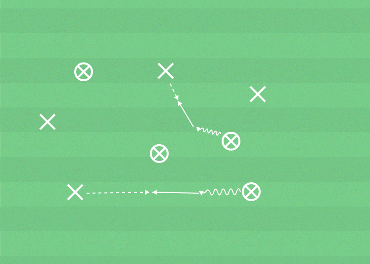 Alternativ 3: Detta alternativ utförs som alternativ 2, men den som har boll passar till någon som inte har boll.