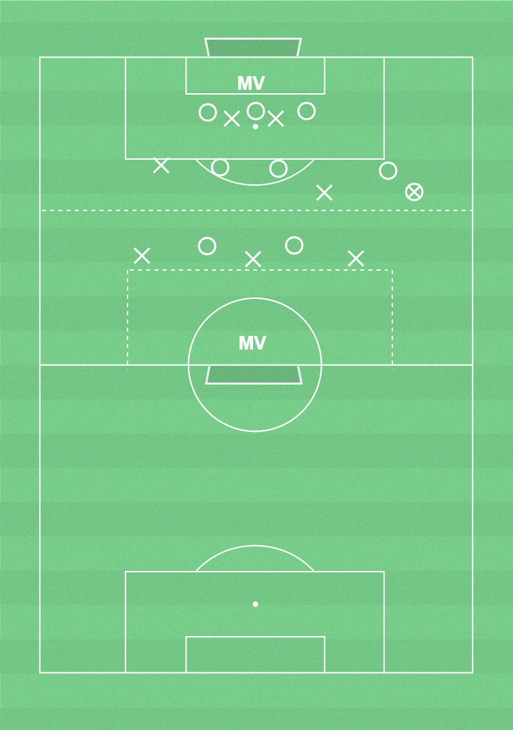 Genom att samarbete och veta sina uppgifter när bolllen närmar sig eget mål ökar chanserna för att ta bollen och förhindra mål.
