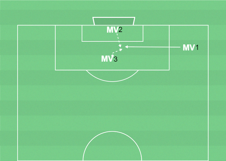 Mv2 är målvakt och Mv3 agerar motspelare.