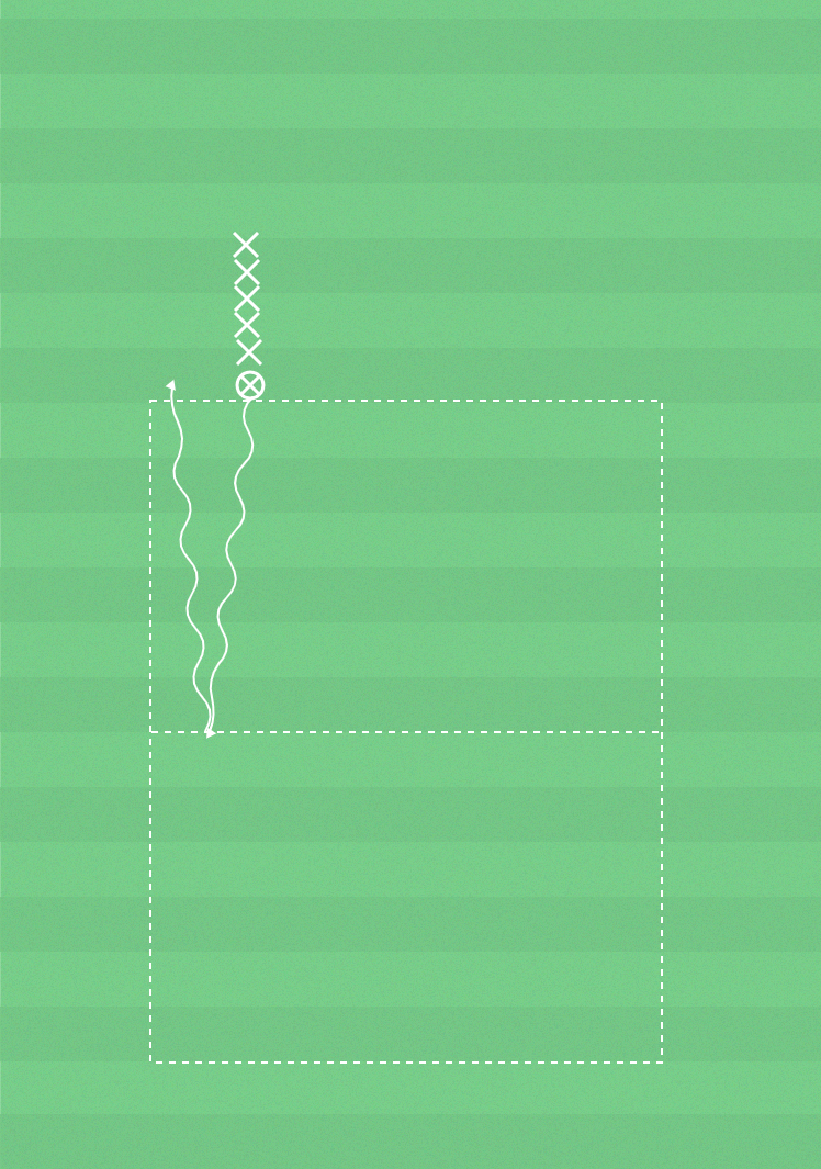Uppgiften är att springa/driva så fort som möjligt. Spelarna står i ett led. Den första springer till en linje och vänder tillbaka till ledet. Där tar nästa spelare över. När alla spelare har genomfört övningen har laget klarat uppgiften. Övningen sker på tid. Det gäller för laget att försöka slå sin föregående tid.