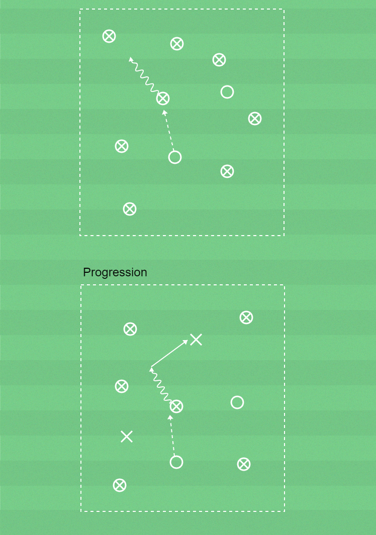 Anfallsspelarna har hjälp av en medspelare utan boll. Pressad spelare kan passa till spelbar medspelare som då tar över ansvaret för bollen.