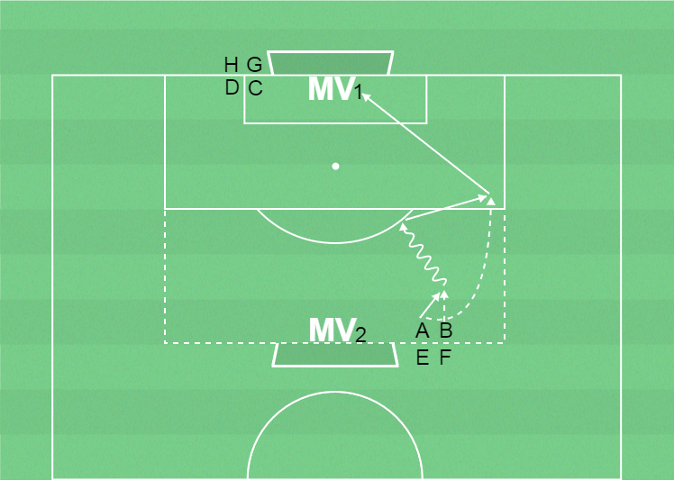 A gör en överlappning och får passning från B.