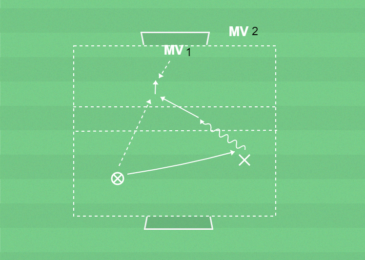Övningen vänder mot andra målet då Mv1 och Mv2 blir utespelare.